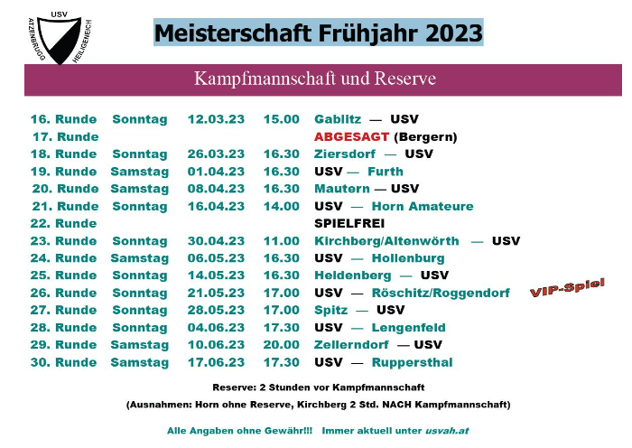Vorschau Meisterschaftsspiele Frühjahr 2025